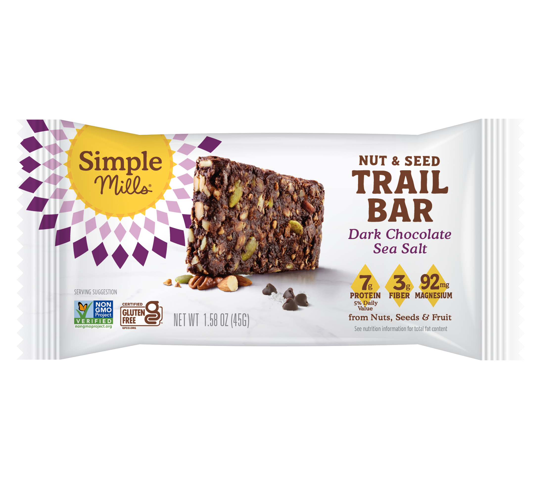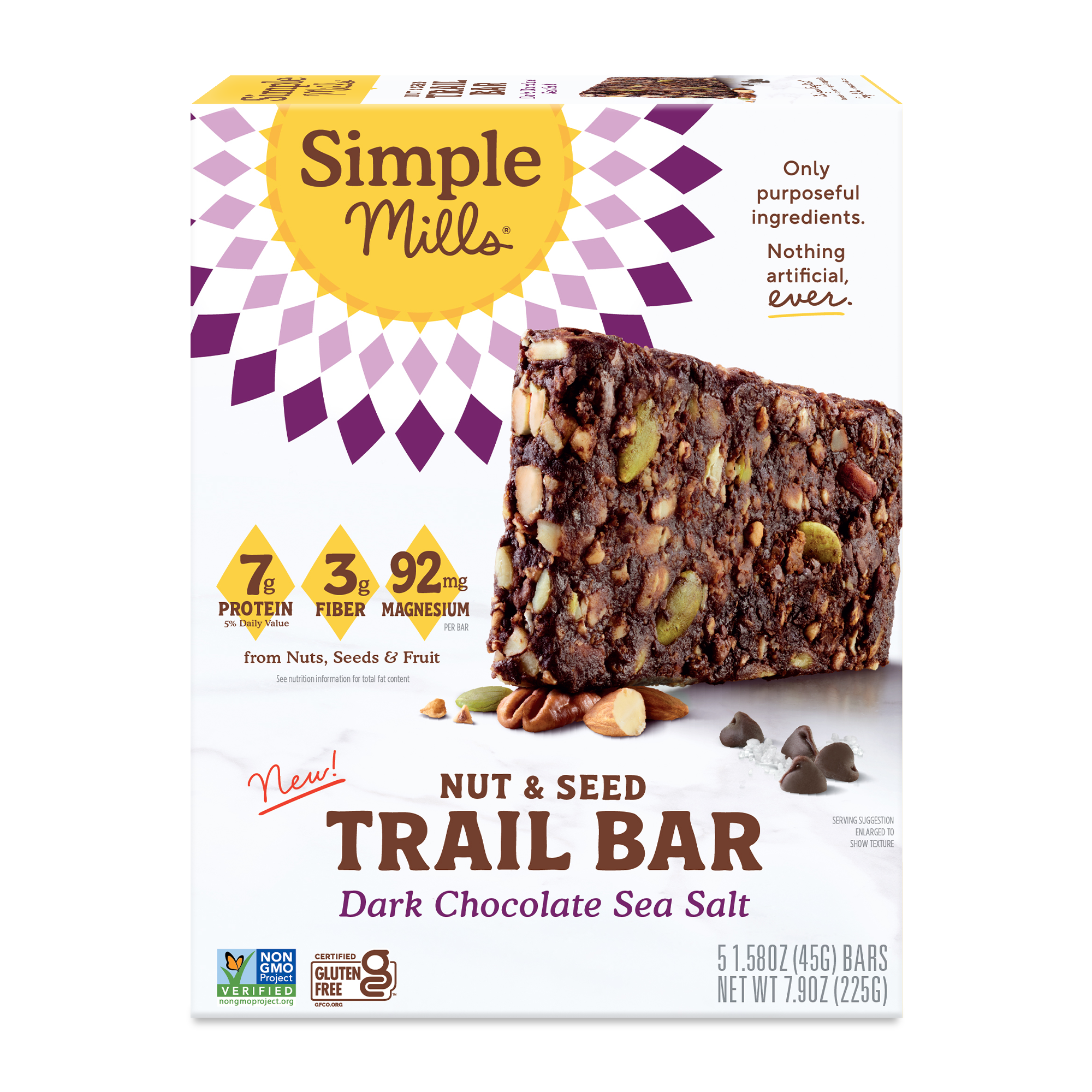 Perfectly chewy and satisfyingly crunchy, Simple Mills Dark Chocolate Sea Salt Trail Bars are packed with nuts and seeds for a craveable, chocolatey bite you can take anywhere.