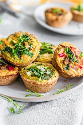 Can’t decide what kind of quiche to make? Why choose one way when you can have all three in this recipe for Mini Quiches 3 Ways. Enjoy this trifecta of flavors with three flavor combinations: asparagus and goat cheese, broccoli and cheddar and sundried tomato and sausage. These quiche are perfect for a weekday breakfast or weekend brunch.