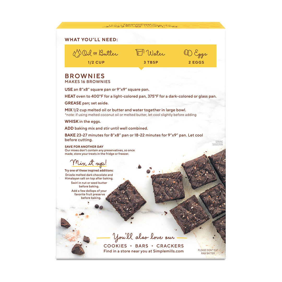 SIMPLE INGREDIENTS: Almond Flour, Organic Coconut Sugar, Chocolate Chips (cane sugar, cocoa liquor, cocoa butter), Dutch Cocoa Powder, Tapioca Starch, Arrowroot, Sea Salt, Baking Soda.